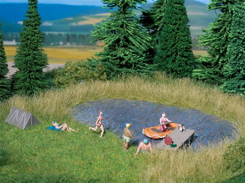 NO07442 - Badsjö med omgivning - Noch H0 275 kr 135 kr Produkten är tillfälligt slut i lager. Artikelnummer: NO07442 Information Mått 22 x 20 cm. OBS! Bryggan, figurerna, tältet och träden på bilden medföljer inte.